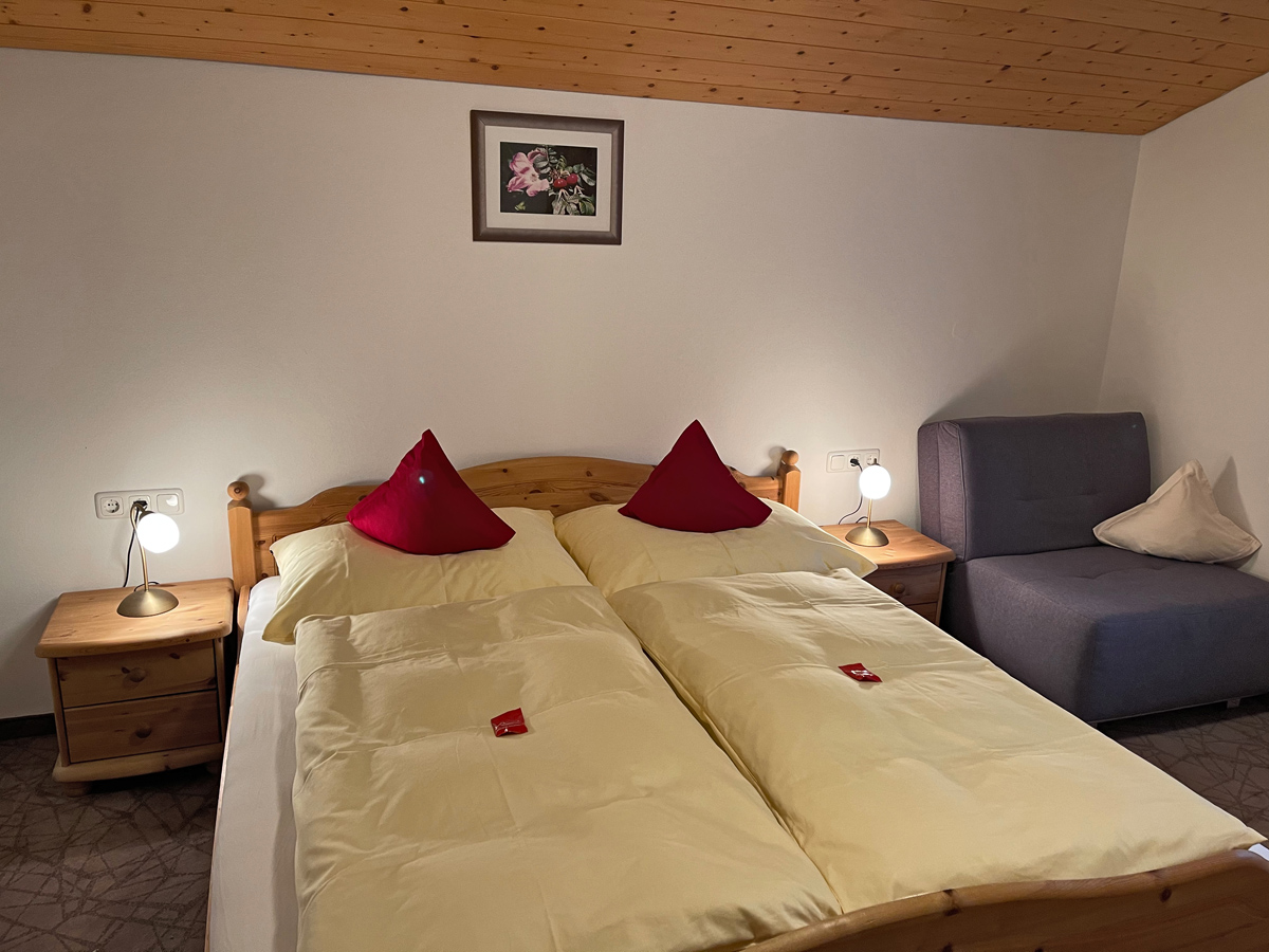 separate Zimmer mit Doppelbetten. 1x mit ausziehbarer Couch (140x200 Liegefläche). Bettwäsche ist vorhanden.